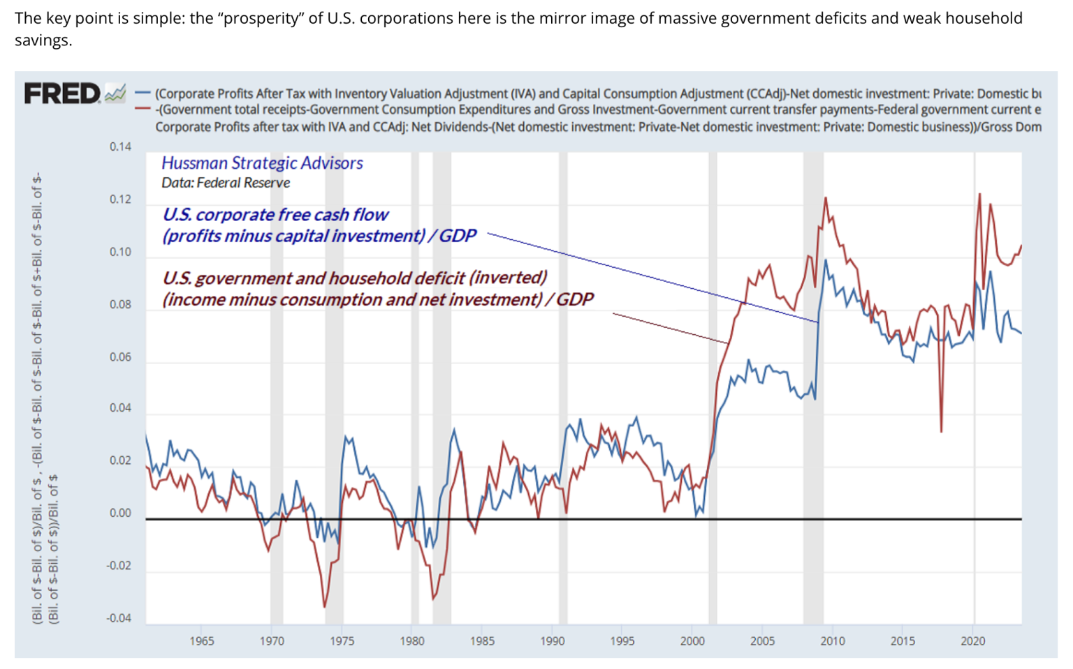 Here Hussman illustrates in one picture that our bullish markets and strong economy are the
