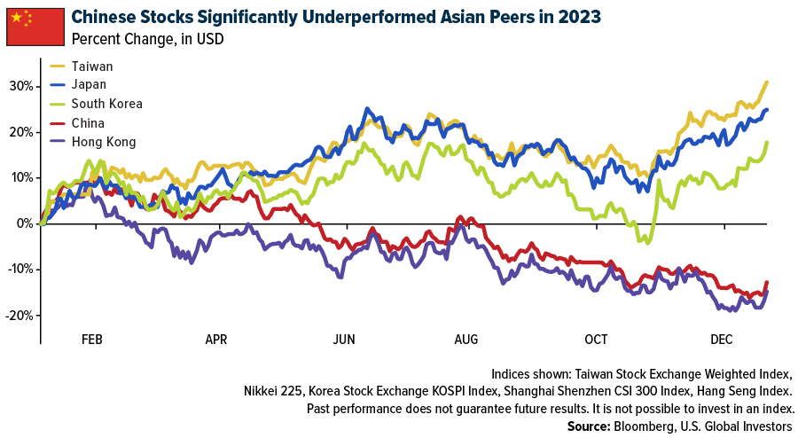 stocks and those listed in Hong Kong ended 2023 with losses, even as other Asia-Pacific markets rallied.