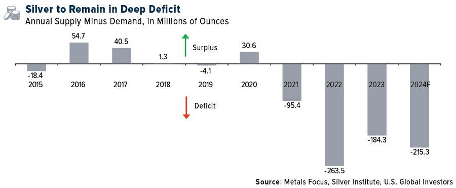 at the fourth consecutive year of a structural market deficit in silver. The deficit is expected to